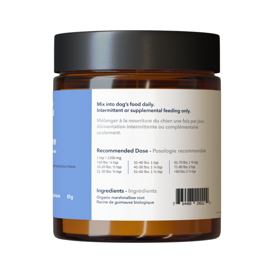 Get your dog back to feeling their best with Marshmallow Root Powder! This all-natural superfood is packed with properties known to help reduce inflammation throughout your dog's body. It may help alleviate symptoms of gastroesophageal reflux disease (GERD), irritable bowel syndrome (IBS), and ulcers, giving them the relief they need. With Marshmallow Root Powder, you can give your dog the soothing and protective digestive tract they deserve!