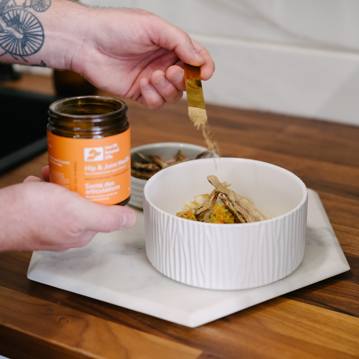 We are making a conscious effort with our packaging to reduce waste and scoops are a small way that we can do this. Some of our products are mandated by Health Canada to include a scoop and you will find one inside your jar, these are bamboo spoons which are ultimately compostable. We know that many or all of you, pet parents, will have a measuring spoon inside your home that can be used and reused in our collective effort to be just a little better to our planet.